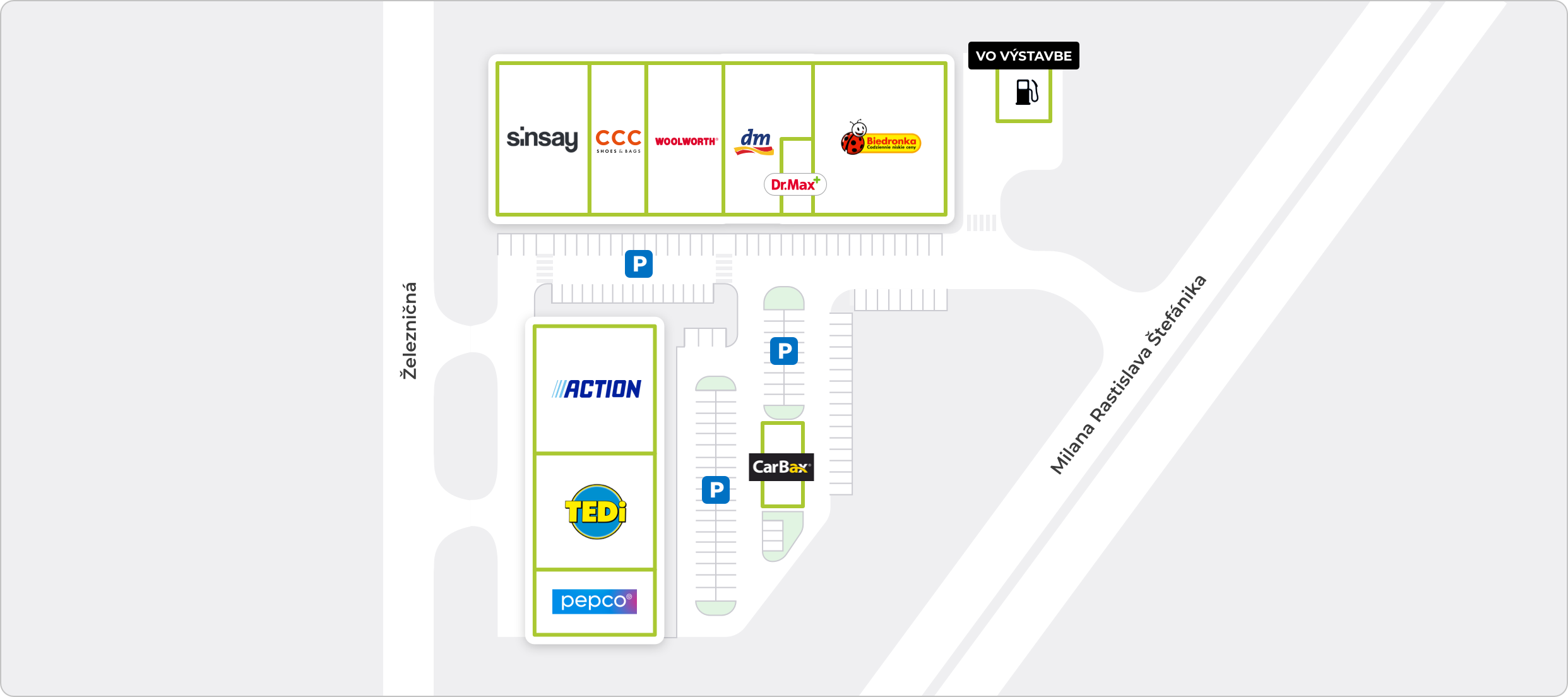 Retail park sa nachádza pri hlavnej mestskej komunikácii – ulici M. R. Štefánika (cesta II/532), ktorá je hlavným dopravným ťahom mesta Revúca.